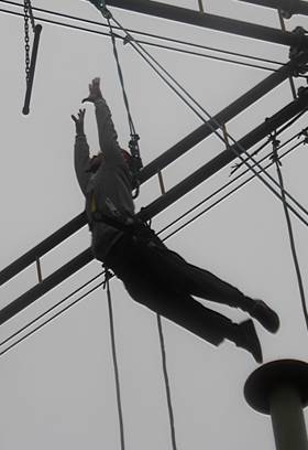 訓練現場群情激躍,隊員們踴躍參與。訓練有五個體驗項目組成,以增強對自己對團隊信任和合理利用資源為目的的穿電網,幫助克服心理障礙、提升自我潛能的空中單杠,鍛煉毅力的攀巖以及培養和改善溝通技巧、運用多種方式溝通解決問題的氣球辯論。在項目完成后,隊員們在培訓師的引導下進行了分享,暢談親身體驗和感悟,發現問題、分析原因,將活動意義延伸,引向深入。